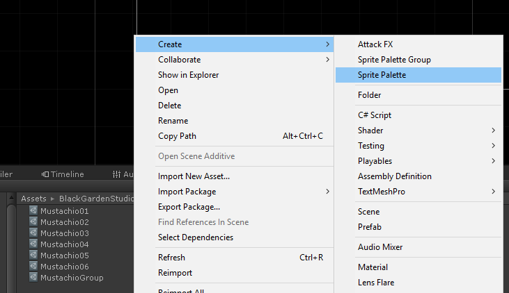 Once your palette.png is placed inside the folder containing your character’s sprite sheets you should now reimport the sheets so they will be indexed. Once indexed they will look black, this is OKAY, they will return to normal once in-game and using the sprite-palette material. Indexing the sprite sheets does not modify the originals in your file system; only how they are in Unity.