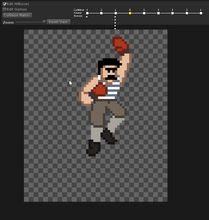 From the timeline you can quickly see how many hitboxes and events a frame in your character’s animation has.
