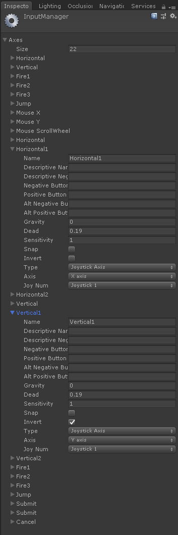 - Repeat the above steps for “Vertical”, making “Vertical1” and “Vertical2”, and assigning their respective “Joy Num” properties.